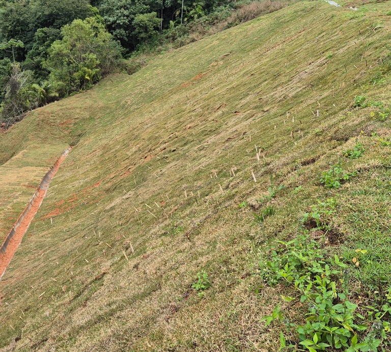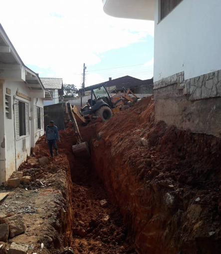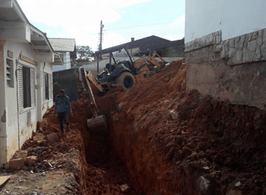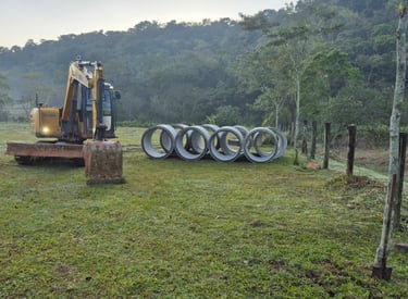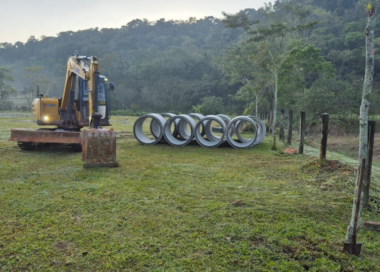 Limpeza de vala e instalação de tubos para garantir acesso seguro e adequado ao terreno.