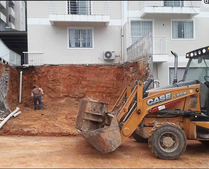 Remoção do muro que cedeu e escavação completa para a construção de uma nova base estrutural, garantindo segurança e durabilidade